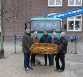 Nachdem die Störche letztes Jahr auf unserem Schornstein ein Nest gebaut haben, wurde nun am 06.04.2022 unser Storchenhorst aufs Dach montiert. Die Kinder haben gebannt zugeschaut und applaudiert.