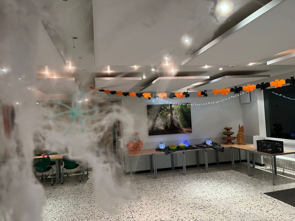 Wir haben uns am Mittwoch morgens an der Schule getroffen und sind mit zwei Bussen nach Sonsbeck gefahren. Unsere Eltern haben uns gewunken und dann gings los. Da angekommen, haben wir dann erstmal draußen gespielt. Es gab ein Trampolin, ein Fußballfeld und einen Wald. Dann sind wir auf unsere Zimmer gegangen. Tagsüber haben wir mit zwei Frauen Spiele gespielt, bei denen wir zusammenhalten mussten. Zum Beispiel mussten wir aus leeren Colakisten einen Weg bauen und keiner durfte runterfallen. Wir sind ein starkes Team geworden. Abends haben wir einmal Lagerfeuer gemacht und Spiele gespielt und einmal eine Halloweenparty gefeiert. Das war cool, weil fast alle verkleidet waren und wir viel getanzt haben. Das Essen war auch lecker. Am Freitag sind wir nach Hause gefahren.