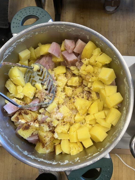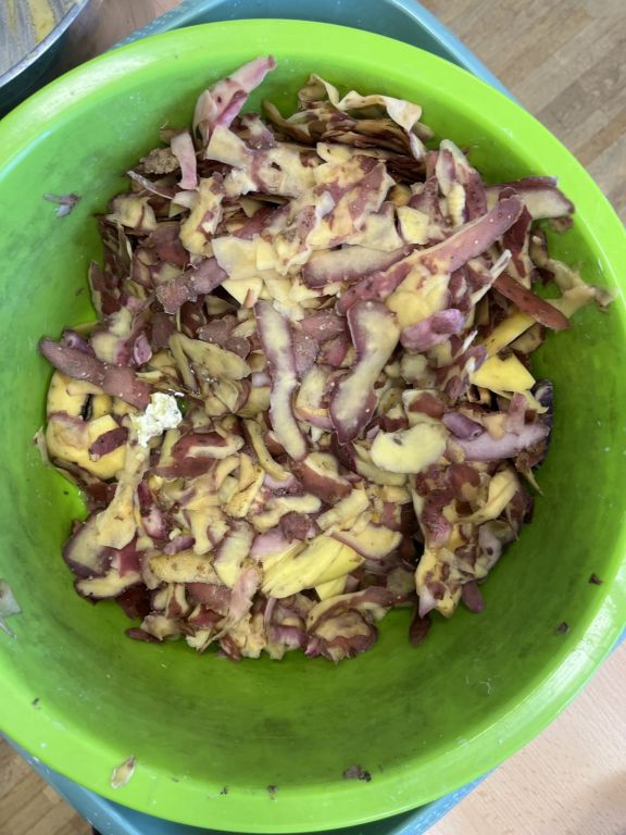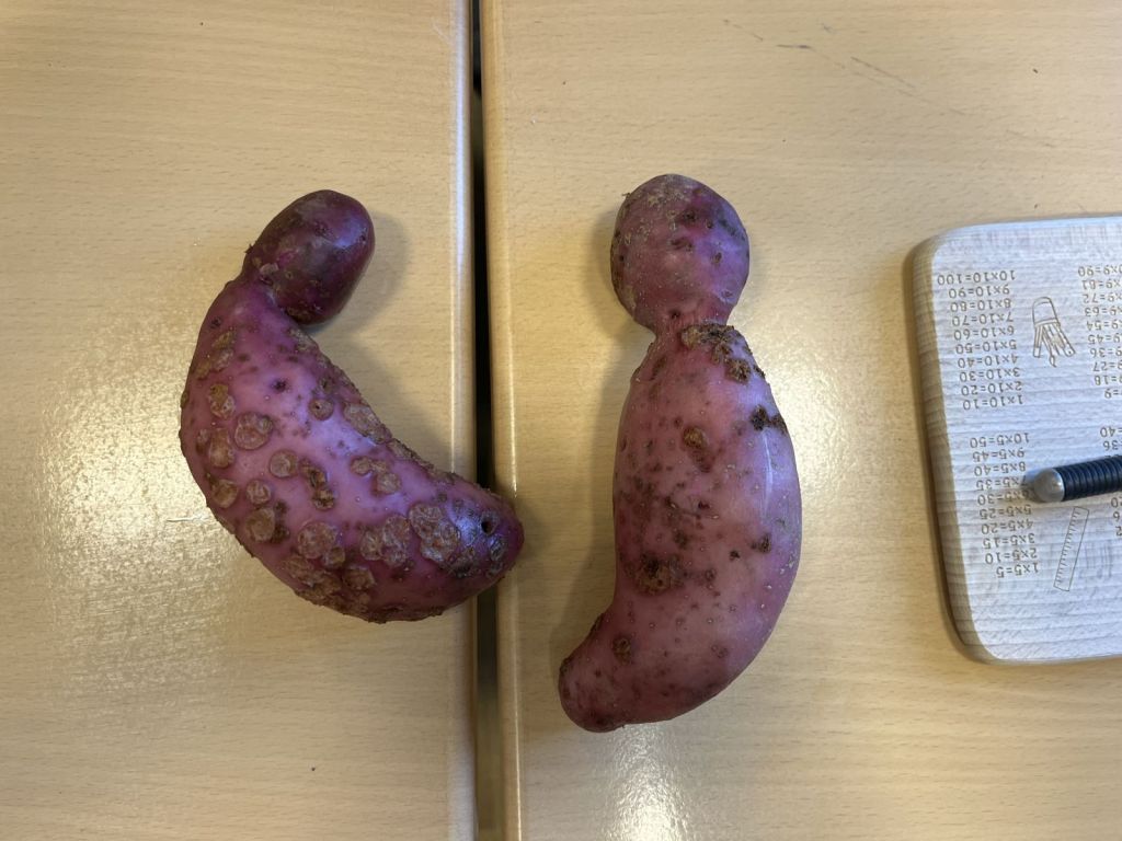 Wir haben am 17.11.2025 unsere Kartoffeln, die wir selber angebaut, gepflegt und geerntet haben, gekocht. Die kleinen Kartoffeln haben Frau Thier und Frau Heusipp schon in der Pause angestellt und daraus wurden dann Pellkartoffeln und dazu gabs Soßen. Die großen Kartoffeln haben wir geschält, klein geschnitten und dann zu Kartoffelpürree gematscht. Das war richtig lecker!