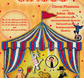 Der Circus Phantasia und die Kinder unserer Schule präsentieren eine atemberaubende Show im Zirkuszelt an der Begegnungsstätte Rindern! Mi, 21.2.24 um 17 Uhr Do, 22.2.24 um 17 Uhr Fr, 23.2.24 um 17 Uhr Sa, 24.2.24 um 10 Uhr