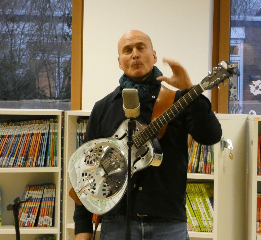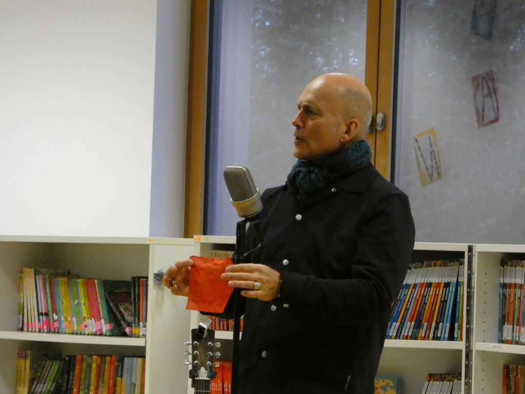 Wir waren bei Oliver Steller in der Aula. Er hatte sogar eine silberne Gitarre dabei. Sie hieß Frieda. Er hat uns sogar Zaubertricks gezeigt. Die waren echt gut und lustig. Er hatte ein rotes Tuch. Er hat es in seine Hand gesteckt und weggezaubert. Dann hatte er ein Malbuch. Wir haben alle Farben rein geschmissen und es war plötzlich ausgemalt. Dann hat er einen Zungenbrecher mehrmals hintereinander immer schneller gesagt. Oliver Steller hat das echt toll gemacht und es hat mir echt Spaß gemacht.